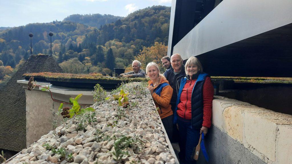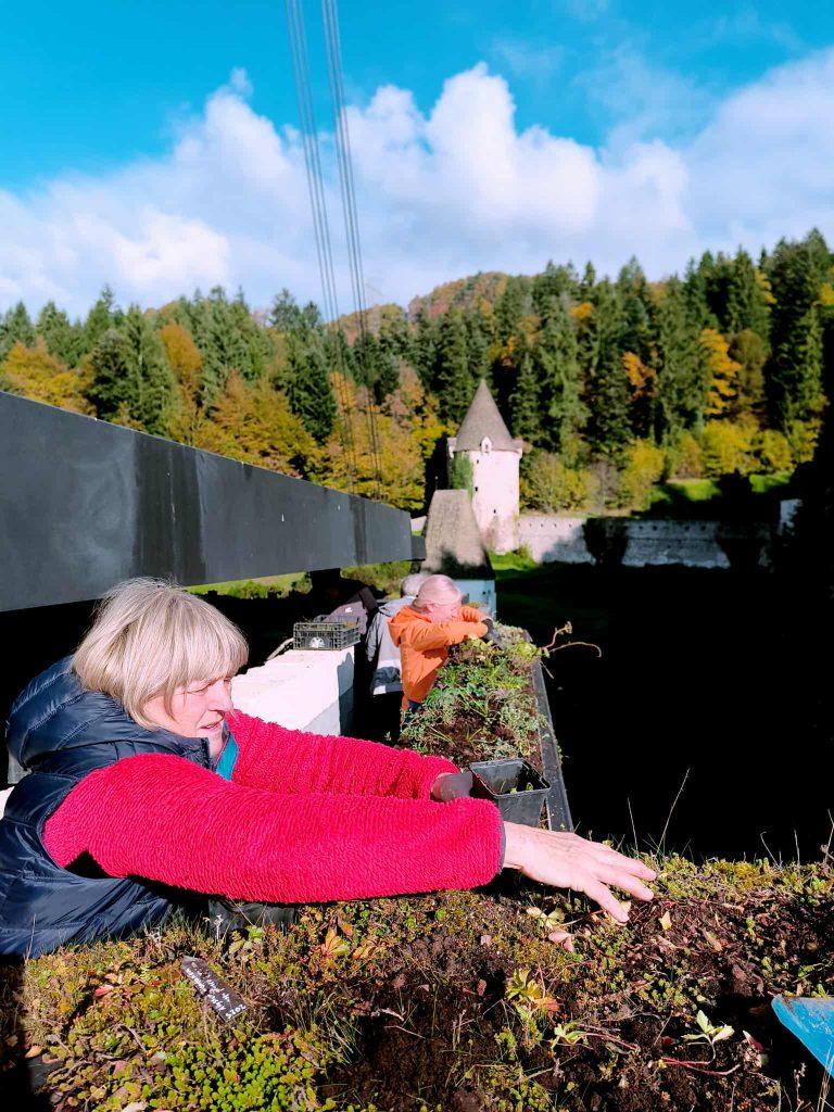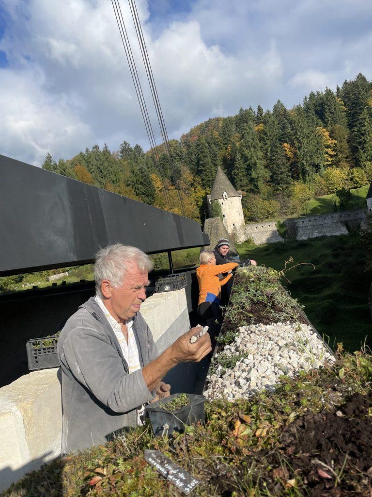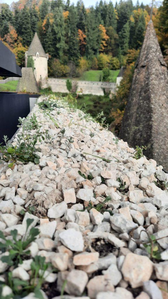 Na strešnem robu obnovljenega objekta nekdanje Cerkve sv. Janeza Krstnika v Žički kartuziji smo v začetku oktobra obstoječo zazelenitev dopolnili s sadikami žičkega grobeljnika – redke in zaščitene rastline, katere rastišče ob kamnolomu v Žičah je zavarovano kot naravni spomenik – ter z drugimi avtohtonimi slovenskimi rastlinskimi vrstami. Rastline so bile v prvi vrsti zasajene z namenom, da prispevajo k izolaciji zidov, zadržujejo padavinsko vodo, zmanjšujejo pregrevanje in se naravno zlijejo z okolico. Zelen rob tudi poudarja značaj »arhitekturne ruševine« in obiskovalcem še močneje izraža podobo stavbe, ki jo je stoletja oblikovala narava. Hkrati pa gre za edinstveno sinergijo med naravno in kulturno dediščino tega območja.