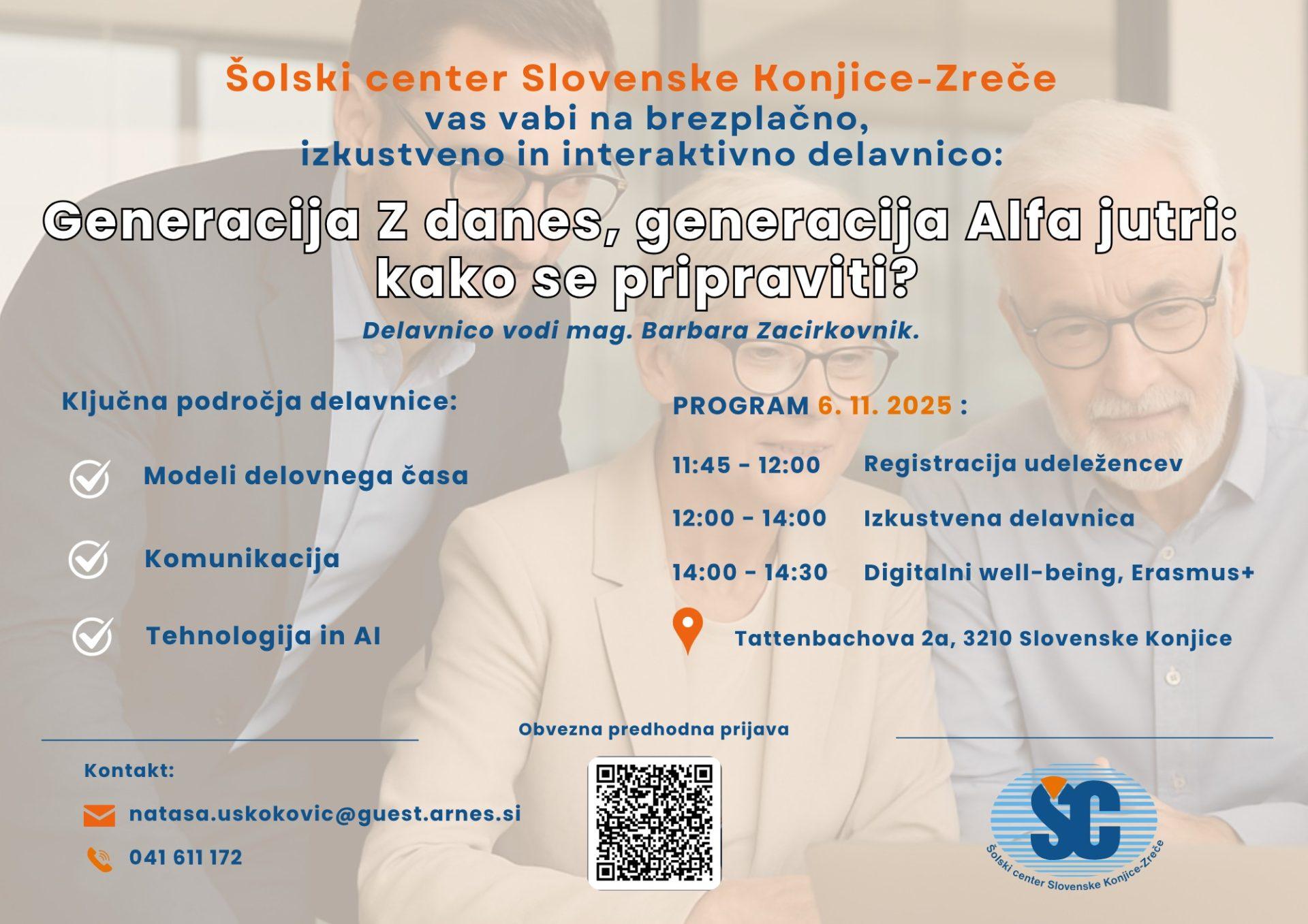 Vabljeni na brezplačno delavnico Generacija Z danes, generacija Alfa jutri: kako se pripraviti?, kjer bomo skupaj raziskali, kako graditi mostove med generacijami in bolje razumeti prihodnost dela.
