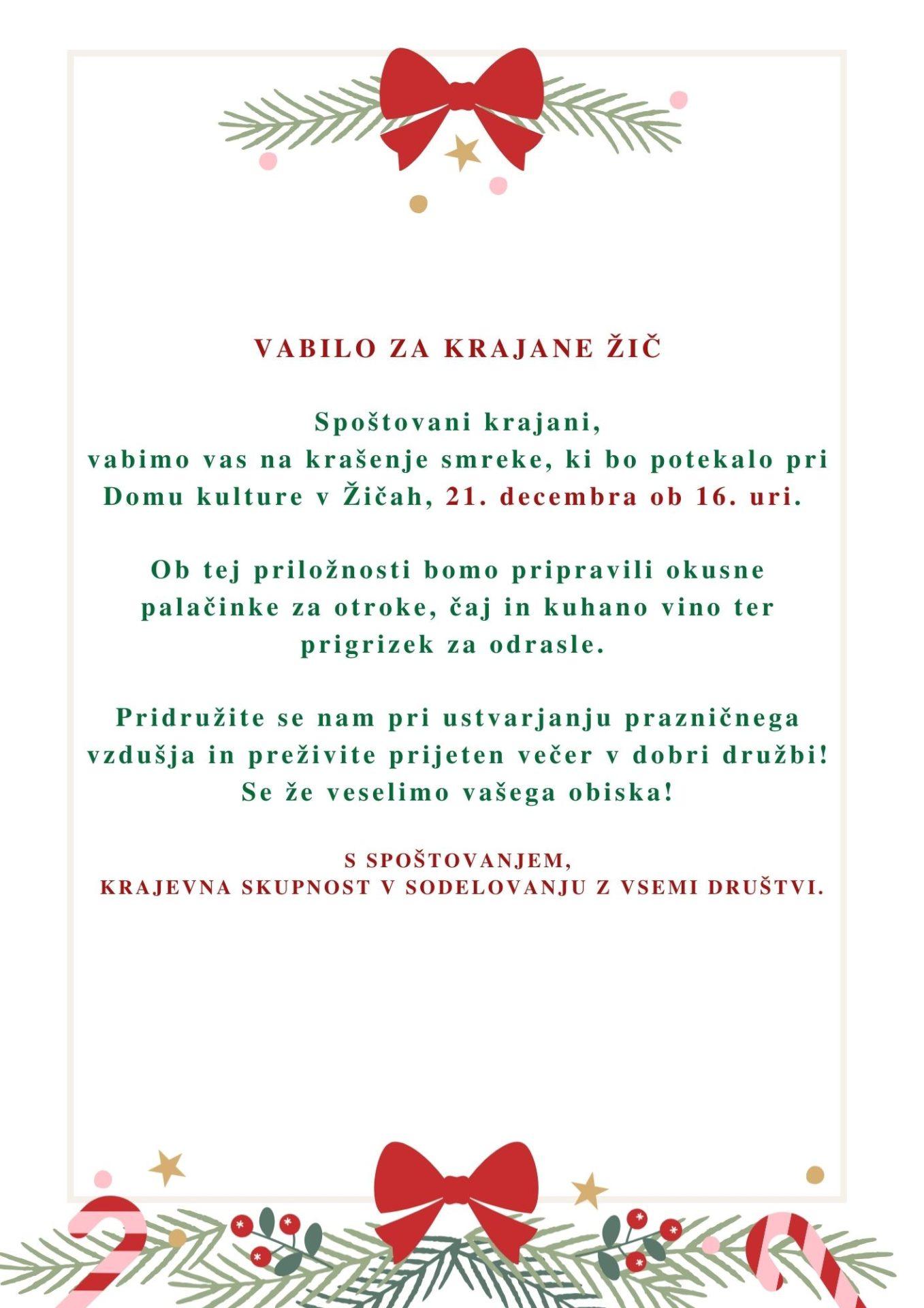 Prihajajočo nedeljo, 21. 12. 2025, ste ob 15.30 vsi skupaj prav lepo vabljeni, da se udeležite PRAZNIČNE DELAVNICE, na kateri bomo izdelali okraske ter z njimi okrasili vaško drevesce.