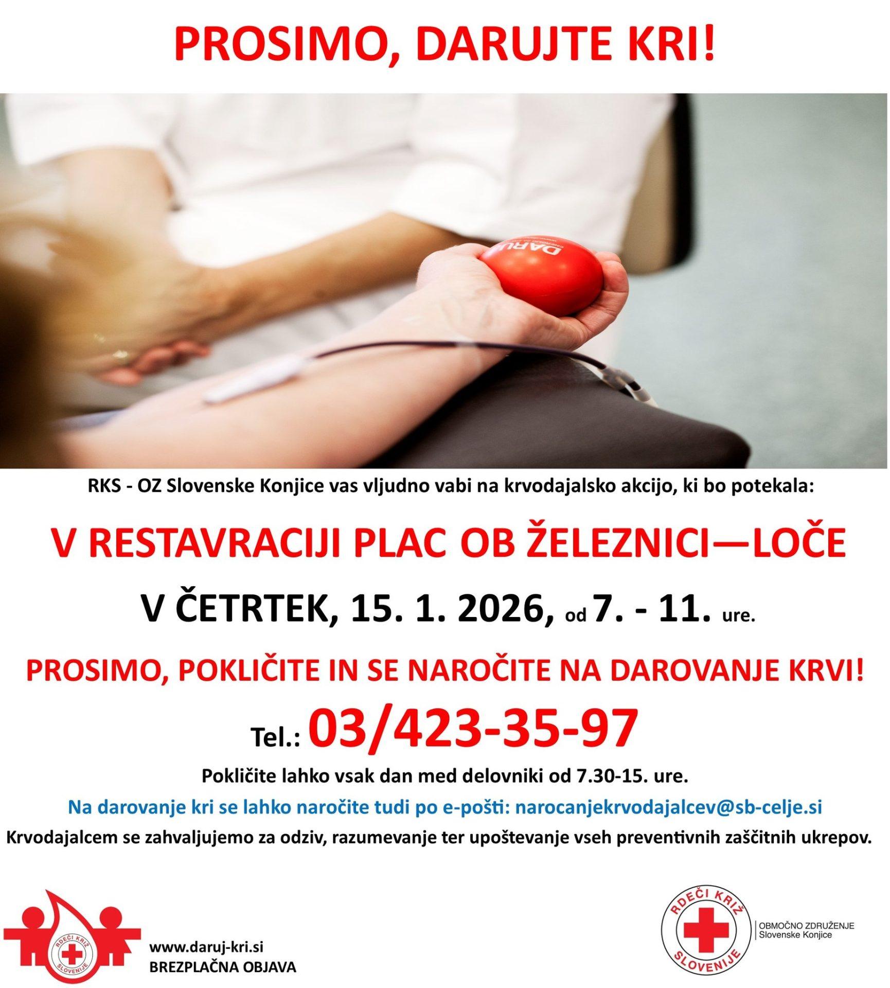 Vabimo vas na prvo letošnjo krvodajalsko akcijo na našem območju, kjer lahko s svojo kapljo krvi nekomu podarite največ – življenje.