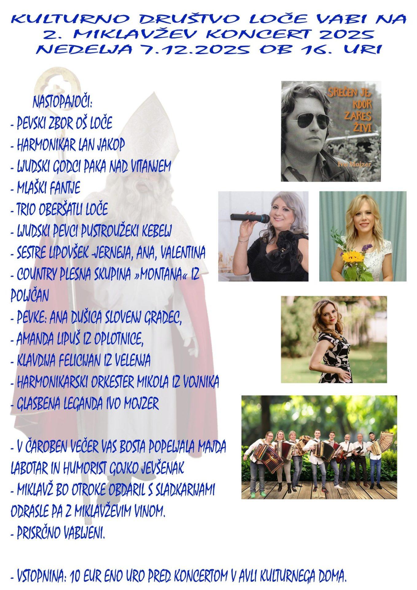 Miklavžev koncert, 7. 12. 2025 ob 16. uri v Domu kulture Loče.