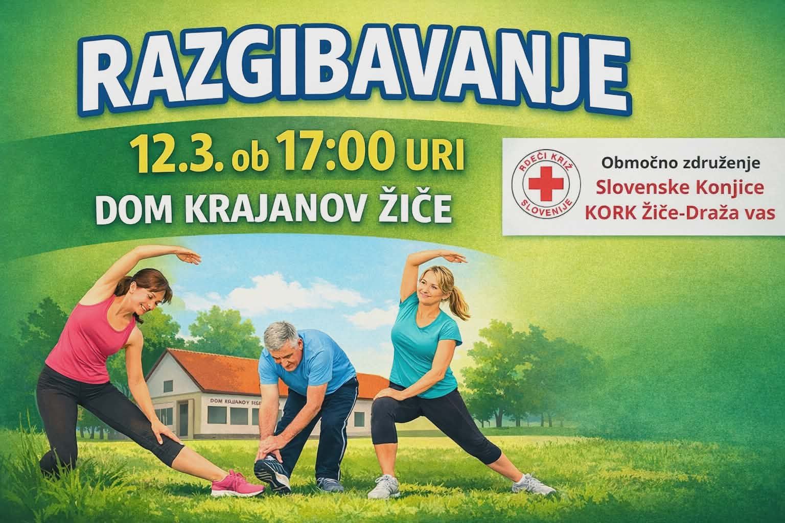 četrtek, 12.3.2026 Redna tedenska telovadba v Žičah Kulturni dom Žiče 17.00 s sabo prinesite telovadne podlogeSe vidimo