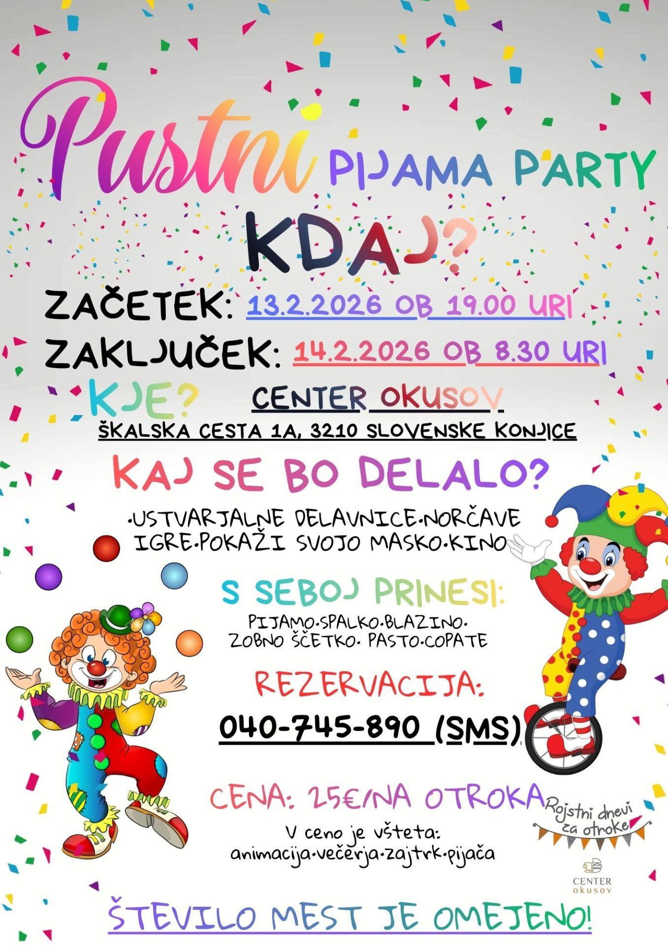 Vabljeni na nepozaben PUSTNI PIŽAMA PARTY, poln smeha, ustvarjanja in zabave! ![]()